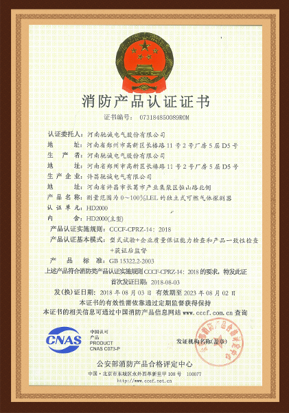HD2000家用燃氣報警器消防證