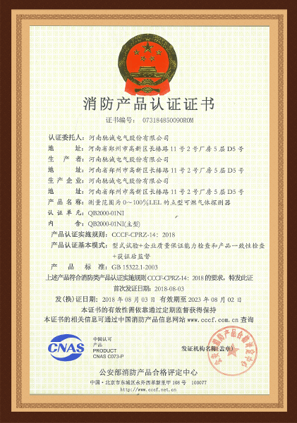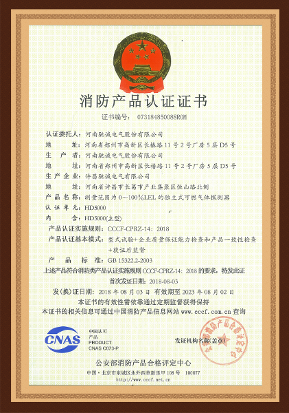 HD5000家用燃氣報警器消防證
