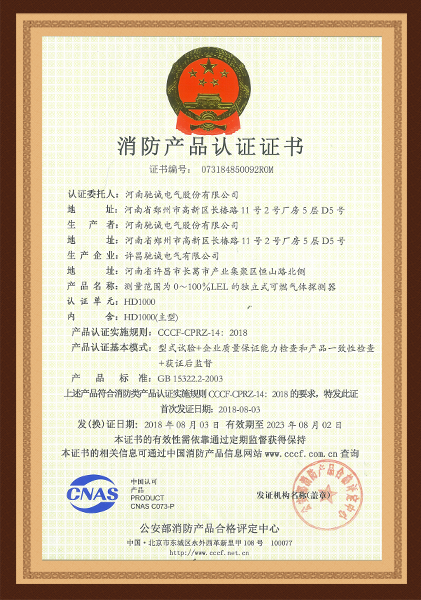 HD1000家用燃氣報警器消防證
