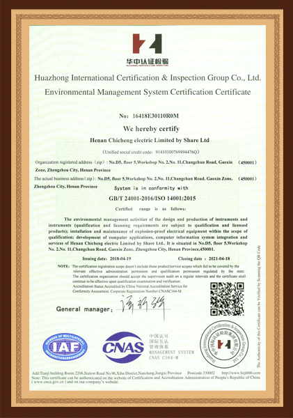 環境管理體系認證證書