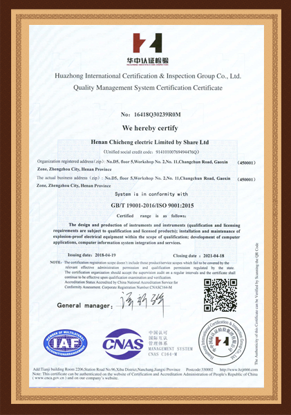 質量管理體系認證證書