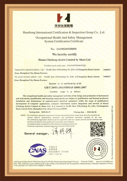 職業健康安全管體系認證證書