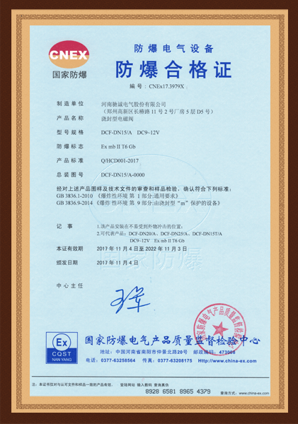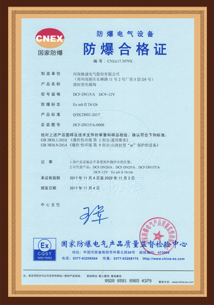澆封型電磁閥工業防爆證